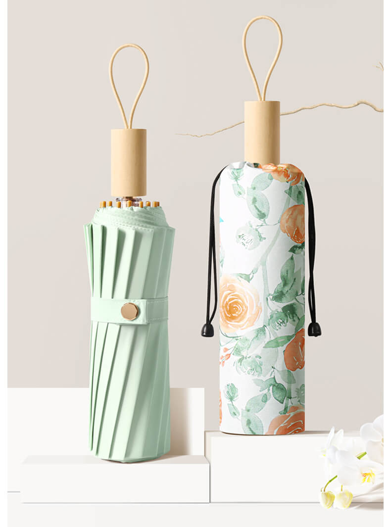 Ô dù cầm tay cao cấp gập 3, 16 xương, họa tiết, tay cầm gỗ, gấp thủ công, chuyên che nắng nắng và mưa, ô dù gấp gọn chống tia cực tím UPF 50+