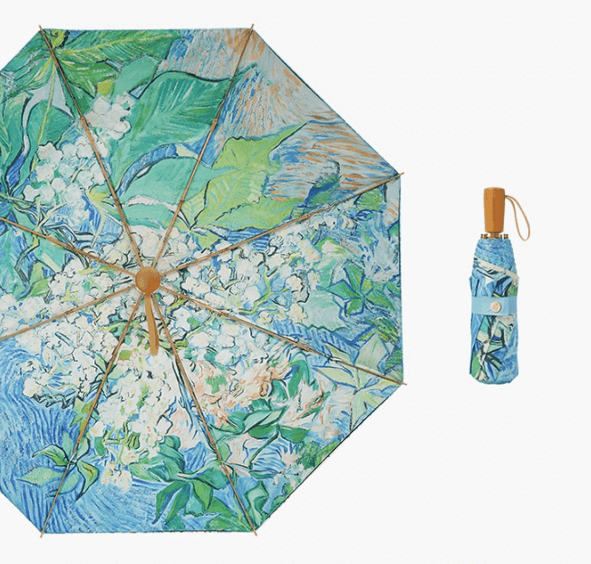 Ô dù cầm tay cao cấp gập 3 cao cấp VONLILIENFELD họa tiết “Cành hạt dẻ nở rộ” của Van Gogh, in 2 mặt sắc nét, chống nắng UPF50+, tán vinyl 2 lớp, khung hợp kim nhôm, tay cầm gỗ sang trọng. Nhỏ gọn, bền đẹp, phù hợp cho phái nữ.
