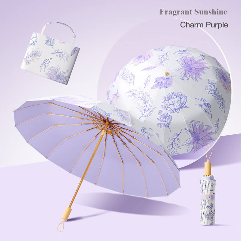 Ô dù cầm tay cao cấp gập 3, 16 xương, họa tiết, tay cầm gỗ Fragrant Sunshine (Outer Flower), gấp thủ công, chuyên che nắng nắng và mưa, ô dù gấp gọn chống tia cực tím UPF 50+