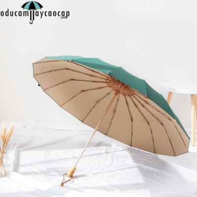 [16 XƯƠNG] Ô dù cầm tay cao cấp 16 xương mạ vàng nhập khẩu chống UV xanh lá - kem