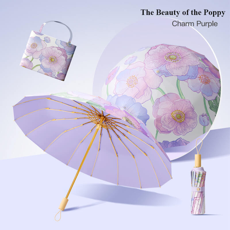 Ô dù cầm tay cao cấp 16 xương Charm Purple – The Beauty of the Poppy không chỉ là vật dụng che mưa nắng tiện ích, mà còn là phụ kiện thời trang cao cấp giúp tôn lên phong cách sang trọng, nữ tính và tinh tế của bạn.