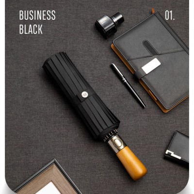 Nếu bạn đang tìm mẫu ô dù cầm tay cao cấp tự động 16 xương vừa chắc chắn, vừa sang trọng tinh tế, thì mẫu Business Black hiện tại sẽ là lựa chọn bạn có thể cân nhắc nhé, vì sản phẩm được thiết kế với điểm nhấn phần tán dù 16 xương carbon chắc chắn, độ chịu lực cao với sức gió lớn, tương đương với 1 vật nặng 10kg tác động vào tán; điểm nhấn thứ 2 của sản phẩm là phần tay cầm bằng gỗ tự nhiên màu nâu vàng kế hợp nút bấm gia cố với chất liệu kim loại giả đồng ấn tượng vừa cổ điển, vừa tinh tế. Khả năng chống UV của sản phẩm lên đến 99%.