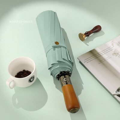 Mist Green 126cm - [ TỰ ĐỘNG LỚN - GẤP 3 - 12 XƯƠNG] Ô dù cầm tay cao cấp tự động lớn 12 xương gấp 3 chống UV tay cầm gỗ