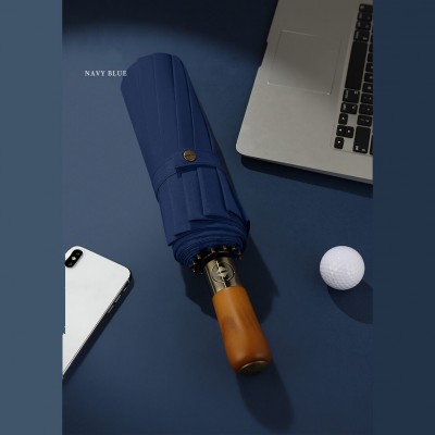 Navy Blue 126cm - [ TỰ ĐỘNG LỚN - GẤP 3 - 12 XƯƠNG] Ô dù cầm tay cao cấp tự động lớn 12 xương gấp 3 chống UV tay cầm gỗ