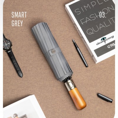 Nếu bạn đang tìm mẫu ô dù cầm tay cao cấp tự động 16 xương vừa chắc chắn, vừa sang trọng tinh tế, thì mẫu Temperament Gray hiện tại sẽ là lựa chọn bạn có thể cân nhắc nhé, vì sản phẩm được thiết kế với điểm nhấn phần tán dù 16 xương carbon chắc chắn, độ chịu lực cao với sức gió lớn, tương đương với 1 vật nặng 10kg tác động vào tán; điểm nhấn thứ 2 của sản phẩm là phần tay cầm bằng gỗ tự nhiên màu nâu vàng kế hợp nút bấm gia cố với chất liệu kim loại giả đồng ấn tượng vừa cổ điển, vừa tinh tế. Khả năng chống UV của sản phẩm lên đến 99%.